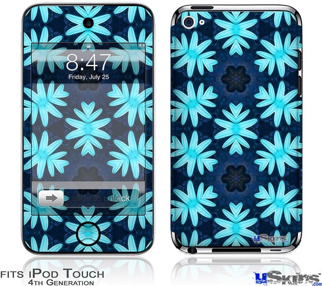 iPod Touch 4G Decal Style Vinyl Skin - Abstract Floral Blue