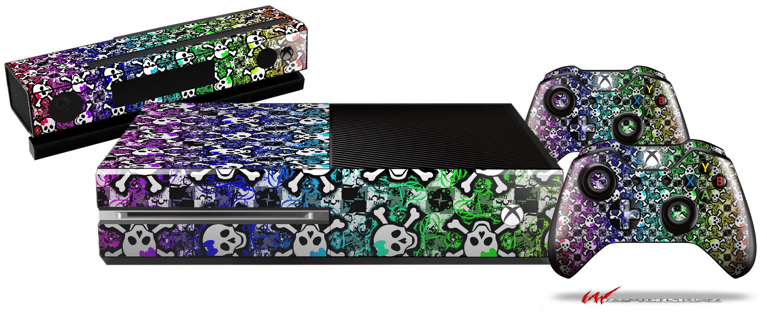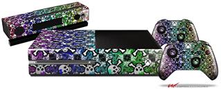 Splatter Girly Skull Rainbow - Holiday Bundle Decal Style Skin fits XBOX One Console Original, Kinect and 2 Controllers (XBOX SYSTEM NOT INCLUDED)