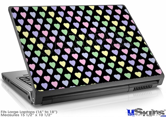 Laptop Skin (Large) - Pastel Hearts on Black