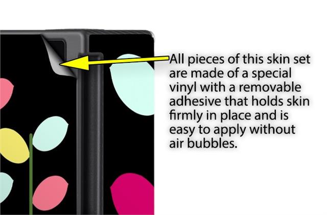 WraptoSkinz™ skins are superb photo quality designs and vibrant colors printed with special Eco-Friendly, fade resistant inks. Our skins are self-adhering flexible vinyl skins that helps prevent scratches. Made of composite, multi-layered commercial grade materials. The bottom layer is made with a special removable adhesive that is easily positioned and applied without air bubbles. We print your design on the bottom layer then bond a professional grade laminate over the entire skin adding a glossy protective finish.