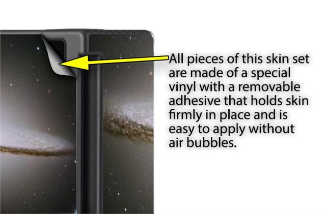 WraptoSkinz™ skins are superb photo quality designs and vibrant colors printed with special Eco-Friendly, fade resistant inks. Our skins are self-adhering flexible vinyl skins that helps prevent scratches. Made of composite, multi-layered commercial grade materials. The bottom layer is made with a special removable adhesive that is easily positioned and applied without air bubbles. We print your design on the bottom layer then bond a professional grade laminate over the entire skin adding a glossy protective finish.