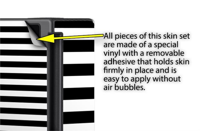 WraptoSkinz™ skins are superb photo quality designs and vibrant colors printed with special Eco-Friendly, fade resistant inks. Our skins are self-adhering flexible vinyl skins that helps prevent scratches. Made of composite, multi-layered commercial grade materials. The bottom layer is made with a special removable adhesive that is easily positioned and applied without air bubbles. We print your design on the bottom layer then bond a professional grade laminate over the entire skin adding a glossy protective finish.