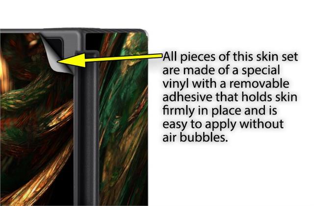 WraptoSkinz™ skins are superb photo quality designs and vibrant colors printed with special Eco-Friendly, fade resistant inks. Our skins are self-adhering flexible vinyl skins that helps prevent scratches. Made of composite, multi-layered commercial grade materials. The bottom layer is made with a special removable adhesive that is easily positioned and applied without air bubbles. We print your design on the bottom layer then bond a professional grade laminate over the entire skin adding a glossy protective finish.