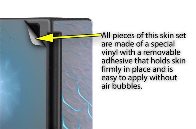 WraptoSkinz™ skins are superb photo quality designs and vibrant colors printed with special Eco-Friendly, fade resistant inks. Our skins are self-adhering flexible vinyl skins that helps prevent scratches. Made of composite, multi-layered commercial grade materials. The bottom layer is made with a special removable adhesive that is easily positioned and applied without air bubbles. We print your design on the bottom layer then bond a professional grade laminate over the entire skin adding a glossy protective finish.