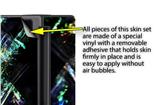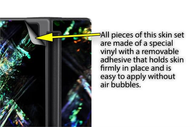 WraptoSkinz™ skins are superb photo quality designs and vibrant colors printed with special Eco-Friendly, fade resistant inks. Our skins are self-adhering flexible vinyl skins that helps prevent scratches. Made of composite, multi-layered commercial grade materials. The bottom layer is made with a special removable adhesive that is easily positioned and applied without air bubbles. We print your design on the bottom layer then bond a professional grade laminate over the entire skin adding a glossy protective finish.