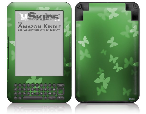 Bokeh Butterflies Green - Decal Style Skin fits Amazon Kindle 3 Keyboard (with 6 inch display)