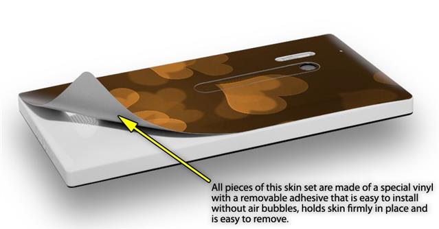 • Decal style vinyl skin covers front, back and side of Nokia Lumia 928 phone.