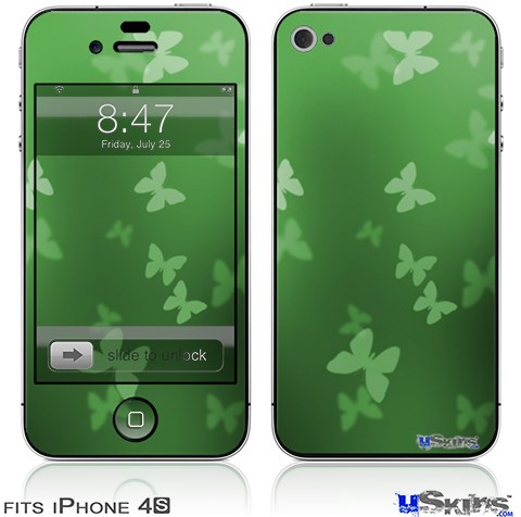 iPhone 4S Decal Style Vinyl Skin - Bokeh Butterflies Green