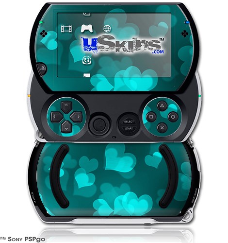 Bokeh Hearts Neon Teal - Decal Style Skins (fits Sony PSPgo)
