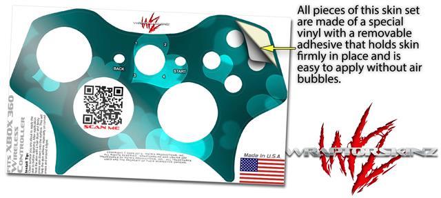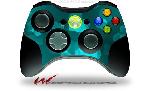 XBOX 360 Wireless Controller Decal Style Skin - Bokeh Hearts Neon Teal (CONTROLLER NOT INCLUDED)