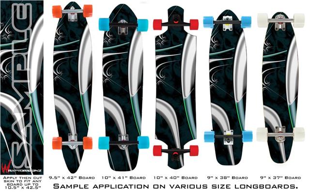 Our longboard skins are made so that one size fits boards up to 10” wide x 42” long. This means after applying the skin it you will trimming to fit you’re the shape of your board with a sharp utility knife.