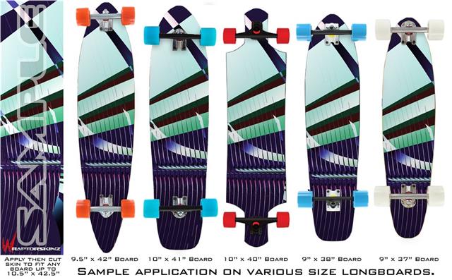 Our longboard skins are made so that one size fits boards up to 10” wide x 42” long. This means after applying the skin it you will trimming to fit you’re the shape of your board with a sharp utility knife.