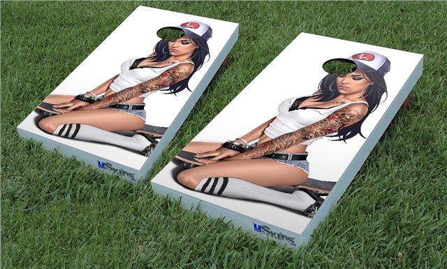 Cornhole Game Board Vinyl Skin Wrap Kit - Boarder Girl 14b fits 24x48 game boards (GAMEBOARDS NOT INCLUDED)