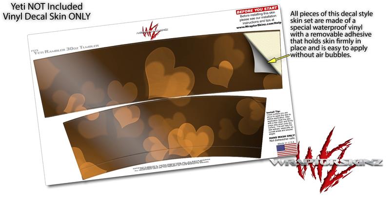 Skin Decal Wrap for Yeti Tumbler Rambler 30 oz Bokeh Hearts Orange (TUMBLER NOT INCLUDED)