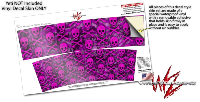 Skin Decal Wrap for Yeti Tumbler Rambler 30 oz Pink Skull Bones (TUMBLER NOT INCLUDED)