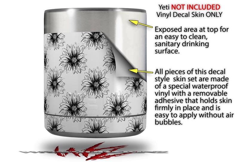 Skin Decal Wrap for Yeti Rambler Lowball - Kearas Daisies Black on White