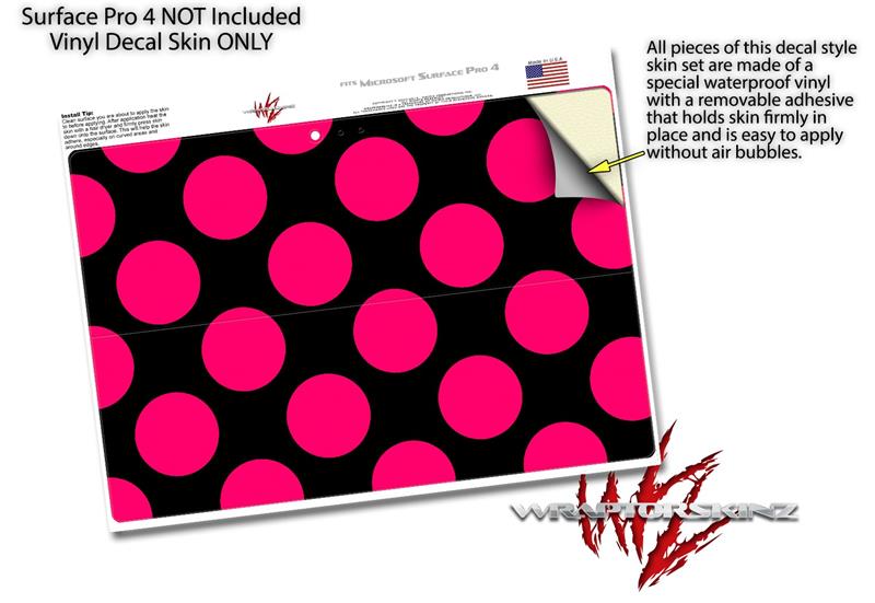 Kearas Polka Dots Pink On Black - Decal Style Vinyl Skin (fits Microsoft Surface Pro 4)