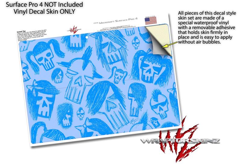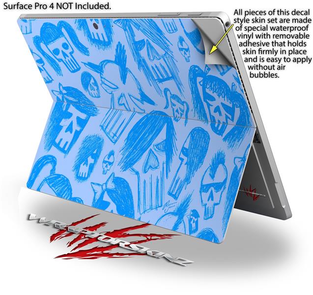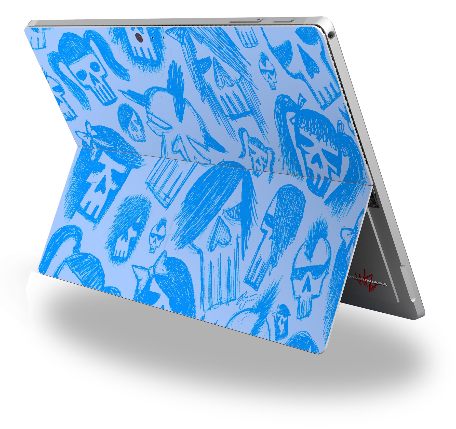 Skull Sketches Blue - Decal Style Vinyl Skin (fits Microsoft Surface Pro 4)
