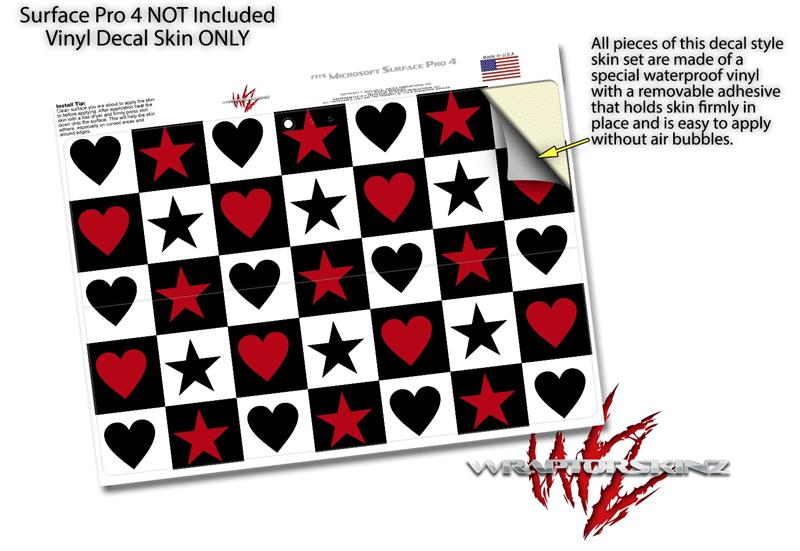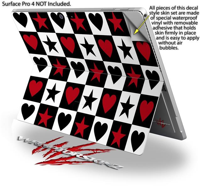 Hearts and Stars Red - Decal Style Vinyl Skin (fits Microsoft Surface Pro 4)