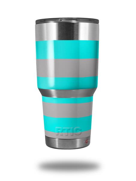 WraptorSkinz Skin Wrap compatible with RTIC 30oz ORIGINAL 2017 AND OLDER Tumblers Psycho Stripes Neon Teal and Gray (TUMBLER NOT INCLUDED)