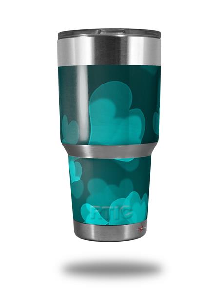 WraptorSkinz Skin Wrap compatible with RTIC 30oz ORIGINAL 2017 AND OLDER Tumblers Bokeh Hearts Neon Teal (TUMBLER NOT INCLUDED)