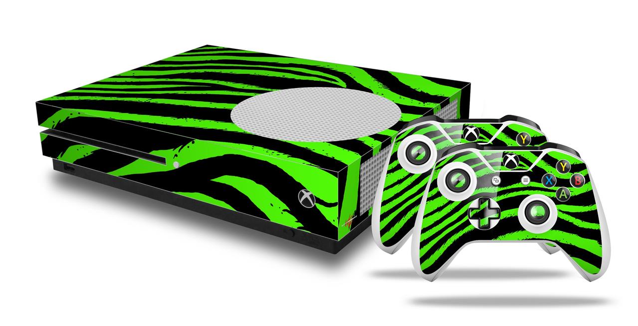WraptorSkinz Decal Skin Wrap Set works with 2016 and newer XBOX One S Console and 2 Controllers Zebra Green