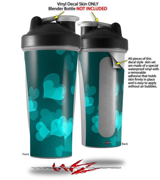Decal Style Skin Wrap works with Blender Bottle 28oz Bokeh Hearts Neon Teal (BOTTLE NOT INCLUDED)
