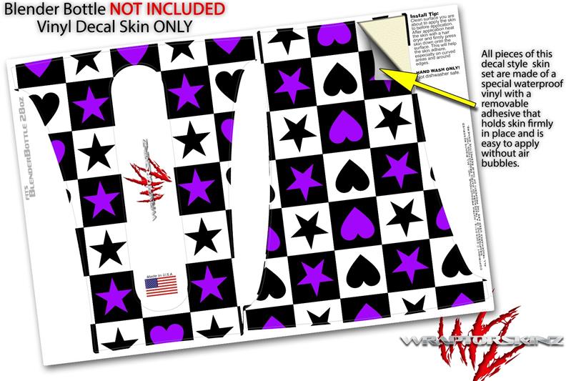 Decal Style Skin Wrap works with Blender Bottle 28oz Purple Hearts And Stars (BOTTLE NOT INCLUDED)