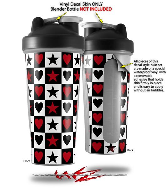 Decal Style Skin Wrap works with Blender Bottle 28oz Hearts and Stars Red (BOTTLE NOT INCLUDED)