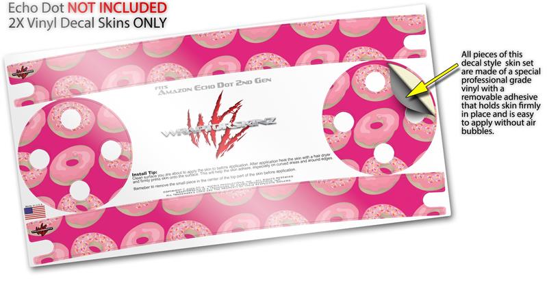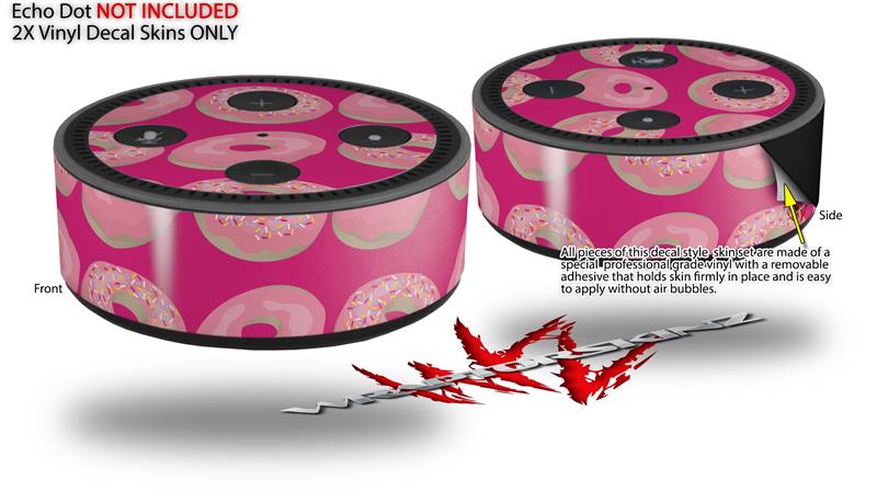 Skin Wrap Decal Set 2 Pack for Amazon Echo Dot 2 - Donuts Hot Pink Fuchsia (2nd Generation ONLY - Echo NOT INCLUDED)