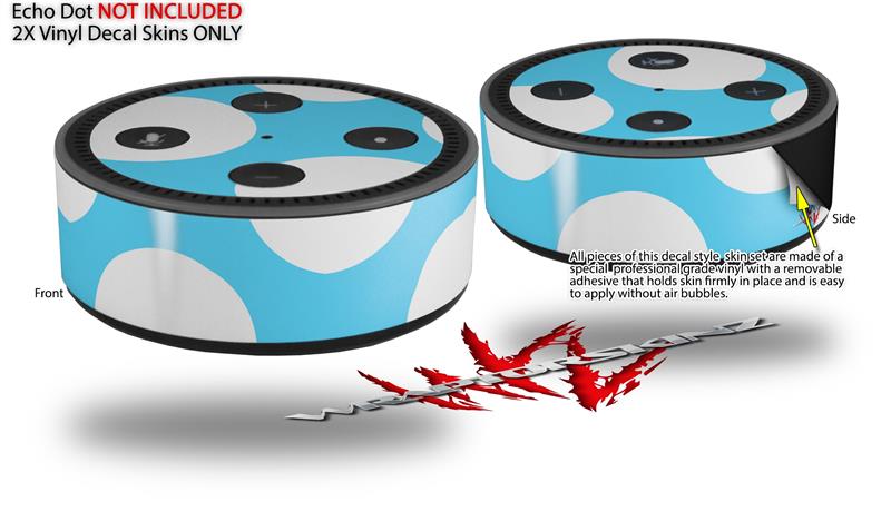 Skin Wrap Decal Set 2 Pack for Amazon Echo Dot 2 - Kearas Polka Dots White And Blue (2nd Generation ONLY - Echo NOT INCLUDED)