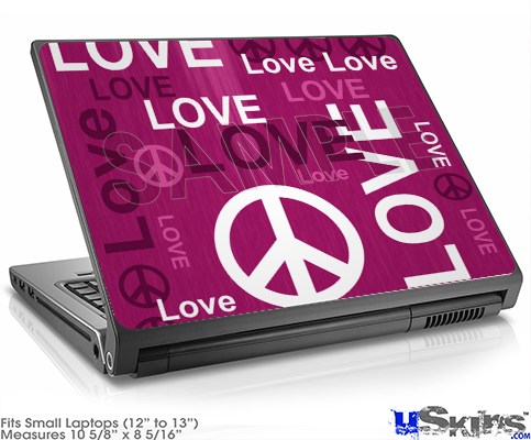 Laptop Skin (Small) - Love and Peace Hot Pink
