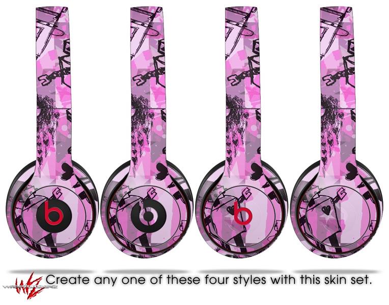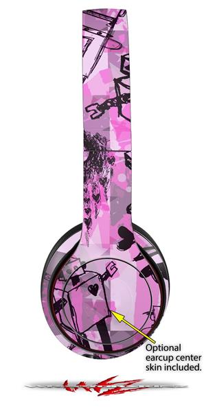 WraptorSkinz Skin Decal Wrap compatible with Beats Solo 2 and Solo 3 Wireless Headphones Scene Kid Sketches Pink (HEADPHONES NOT INCLUDED)
