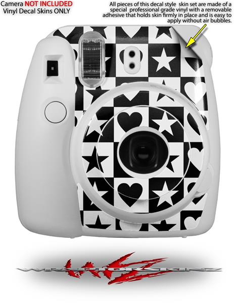 WraptorSkinz Skin Decal Wrap compatible with Fujifilm Mini 8 Camera Hearts And Stars Black and White (CAMERA NOT INCLUDED)