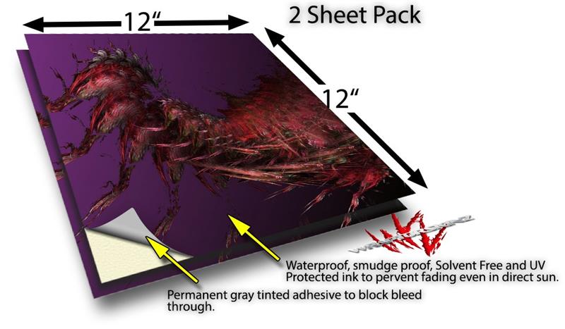 WraptoSkinz™ skin vinyl craft sheets are printed using superb photo quality designs and vibrant colors printed with special UV Protected fade resistant inks that last even in direct sun for years. Unlike other brands our inks are NOT solvent based. WraptorSkinz are a manufactured from professional grade 3mill vinyl. These sheets are waterproof, the designs will not run or smear even if submerged in water.