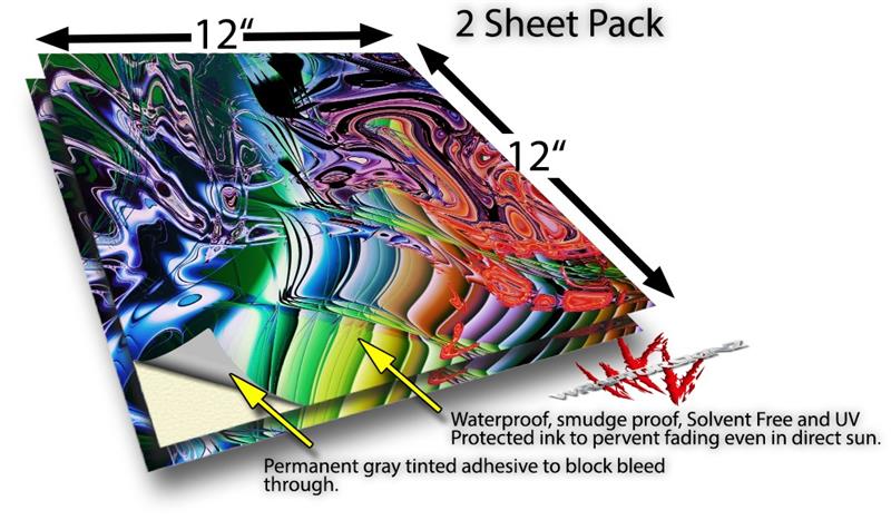 WraptoSkinz™ skin vinyl craft sheets are printed using superb photo quality designs and vibrant colors printed with special UV Protected fade resistant inks that last even in direct sun for years. Unlike other brands our inks are NOT solvent based. WraptorSkinz are a manufactured from professional grade 3mill vinyl. These sheets are waterproof, the designs will not run or smear even if submerged in water.