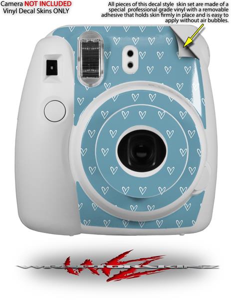 WraptorSkinz Skin Decal Wrap compatible with Fujifilm Mini 8 Camera Hearts Blue On White (CAMERA NOT INCLUDED)