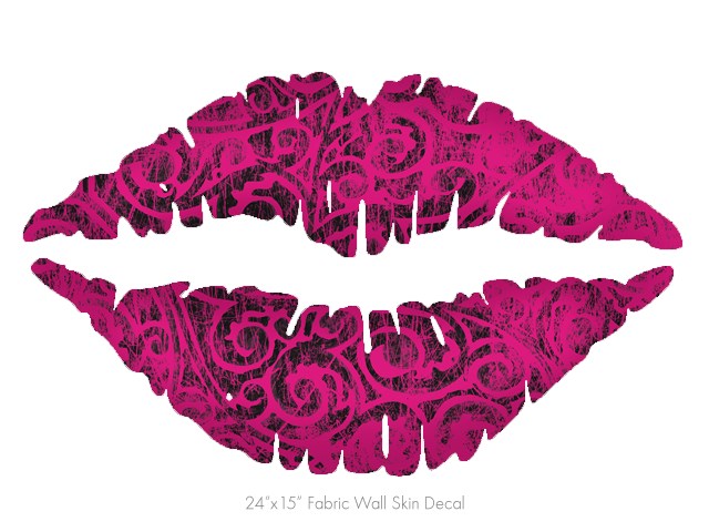 Folder Doodles Fuchsia - Kissing Lips Fabric Wall Skin Decal measures 24x15 inches
