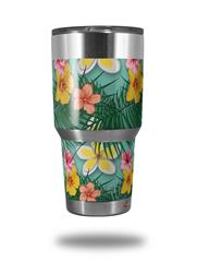 WraptorSkinz Skin Wrap compatible with RTIC 30oz ORIGINAL 2017 AND OLDER Tumblers Beach Flowers 02 Seafoam Green (TUMBLER NOT INCLUDED)
