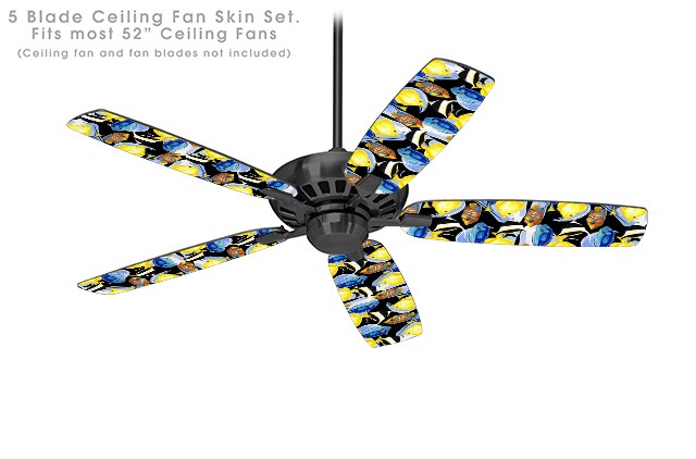 Tropical Fish 01 Black - Ceiling Fan Skin Kit fits most 52 inch fans (FAN and BLADES SOLD SEPARATELY)