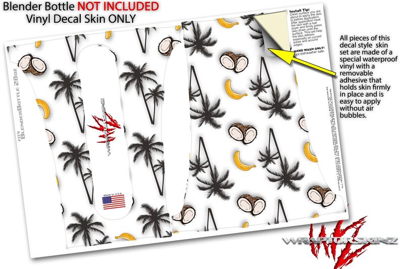 Decal Style Skin Wrap works with Blender Bottle 28oz Coconuts Palm Trees and Bananas White (BOTTLE NOT INCLUDED)