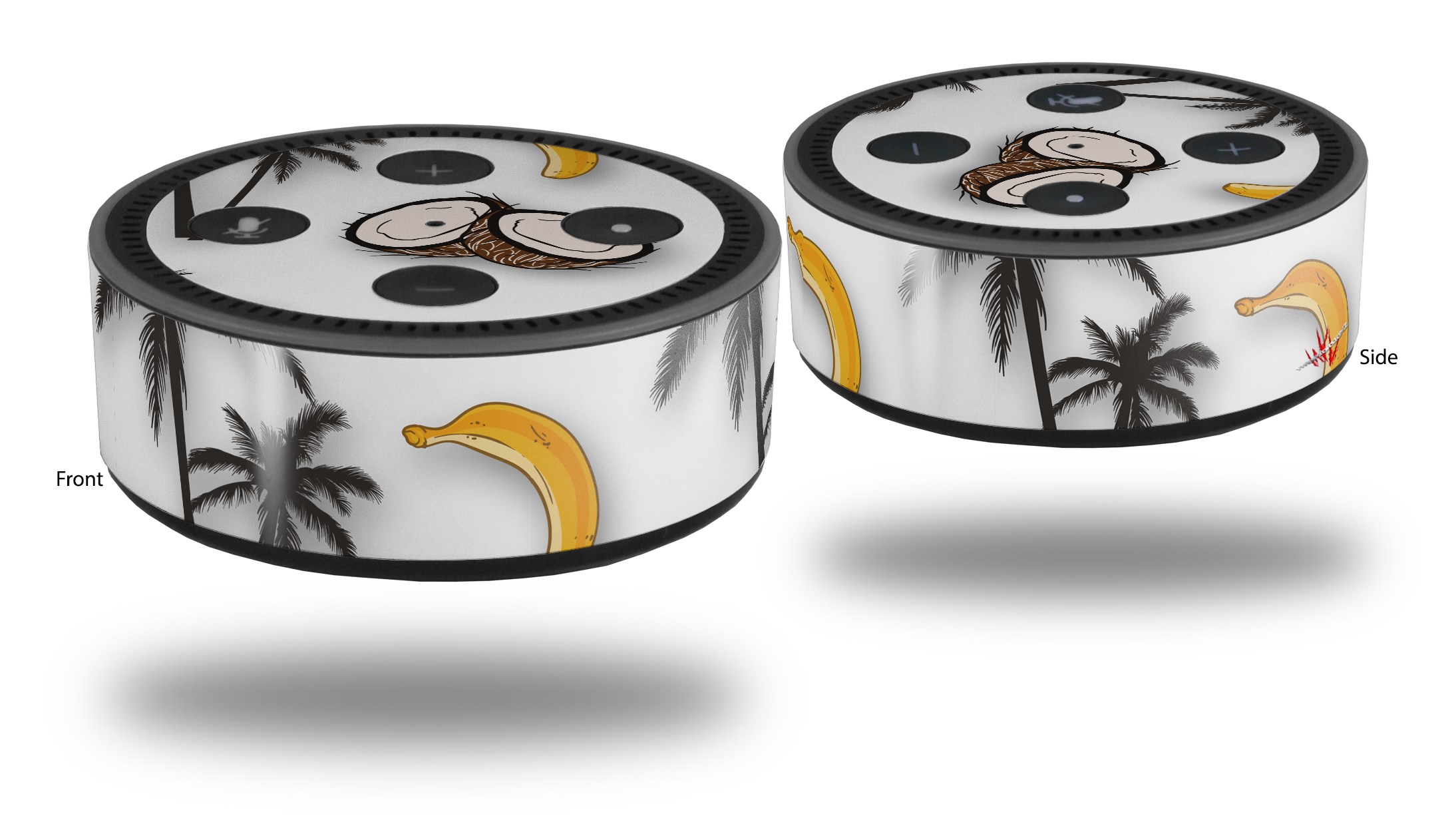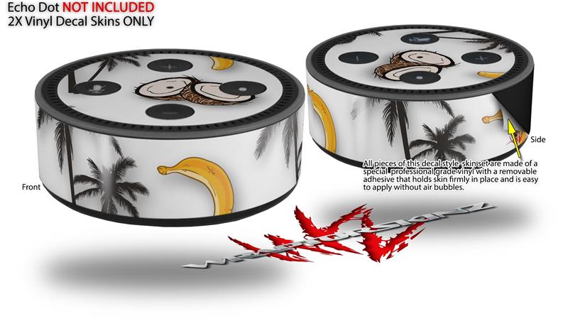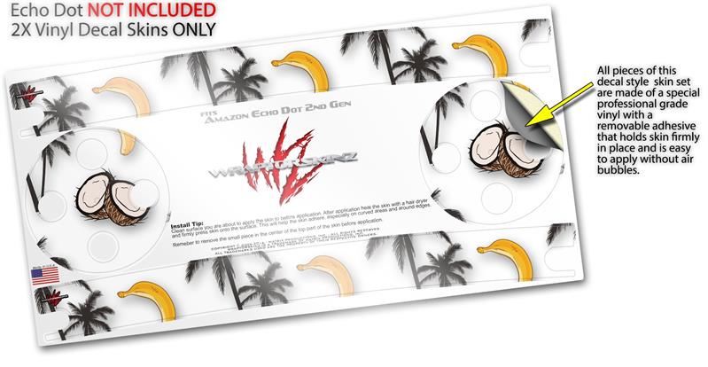 Skin Wrap Decal Set 2 Pack for Amazon Echo Dot 2 - Coconuts Palm Trees and Bananas White (2nd Generation ONLY - Echo NOT INCLUDED)