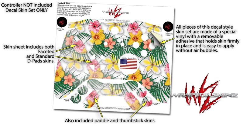 Beach Flowers 02 White - Decal Style Skin fits Microsoft XBOX One ELITE Wireless Controller