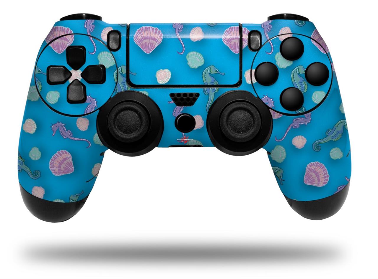 WraptorSkinz Skin compatible with Sony PS4 Dualshock Controller PlayStation 4 Original Slim and Pro Seahorses and Shells Blue Medium (CONTROLLER NOT INCLUDED)
