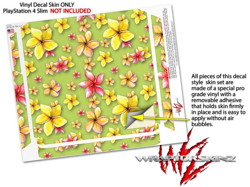 Vinyl Decal Skin Wrap compatible with Sony PlayStation 4 Slim Console Beach Flowers Sage Green (PS4 NOT INCLUDED)