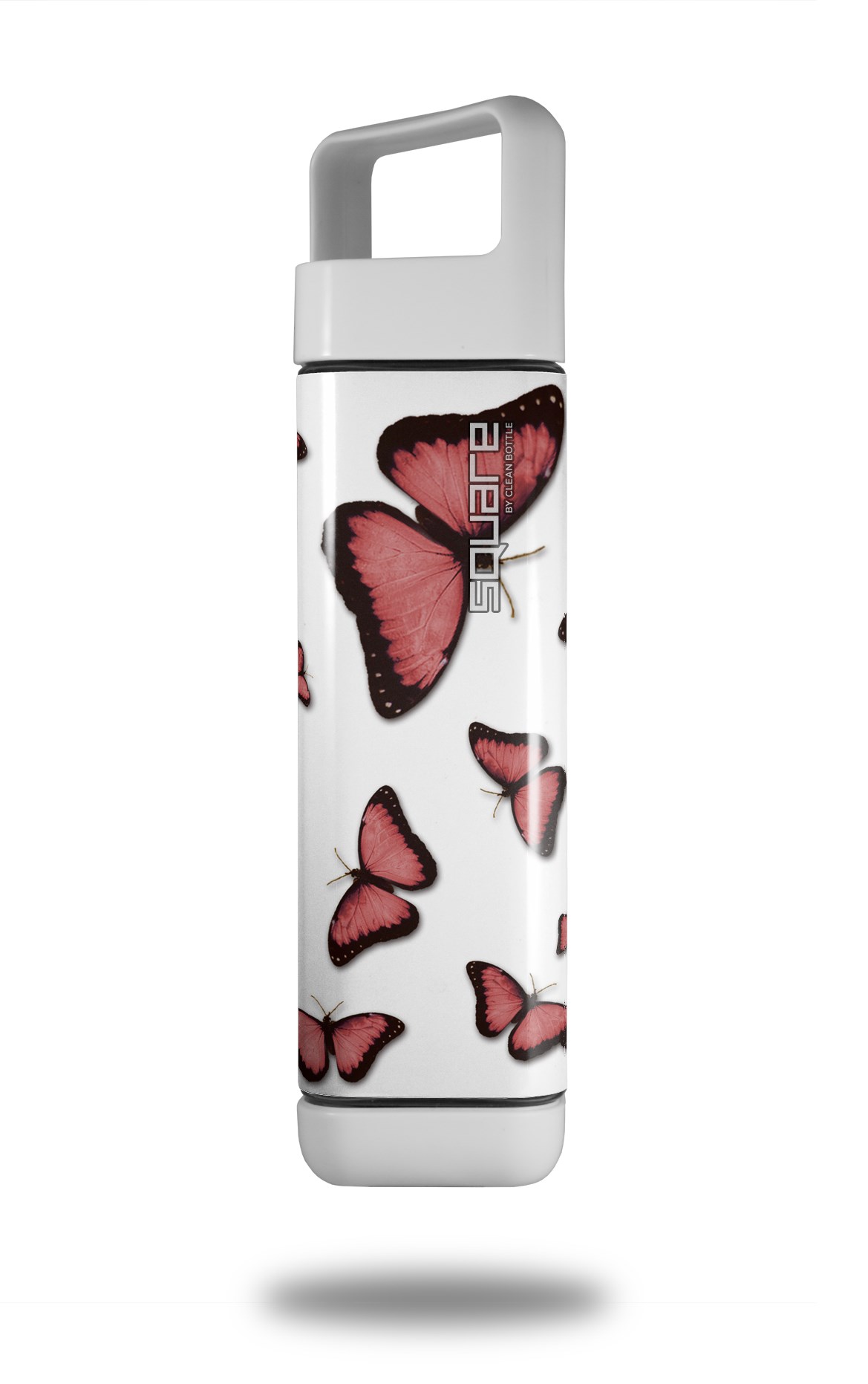 Skin Decal Wrap for Clean Bottle Square Titan Plastic 25oz Butterflies Pink (BOTTLE NOT INCLUDED)
