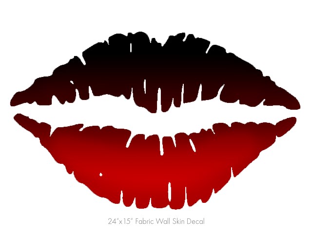 Smooth Fades Red Black - Kissing Lips Fabric Wall Skin Decal measures 24x15 inches