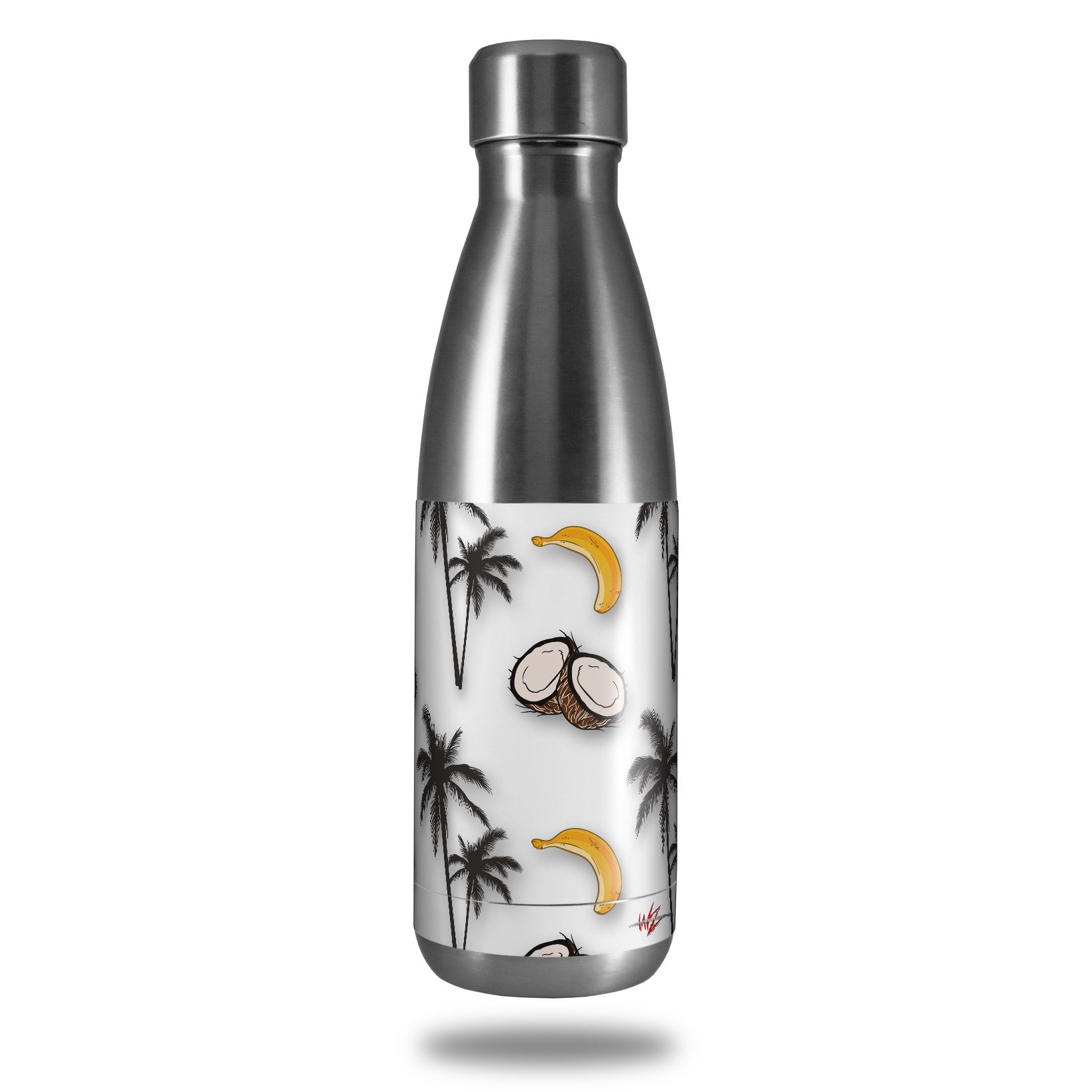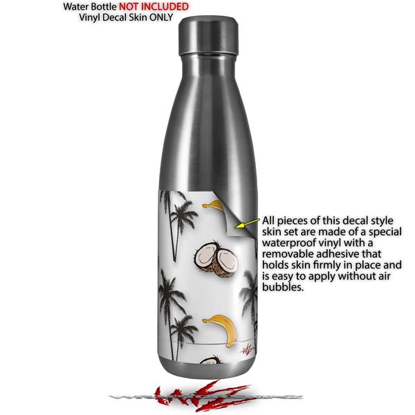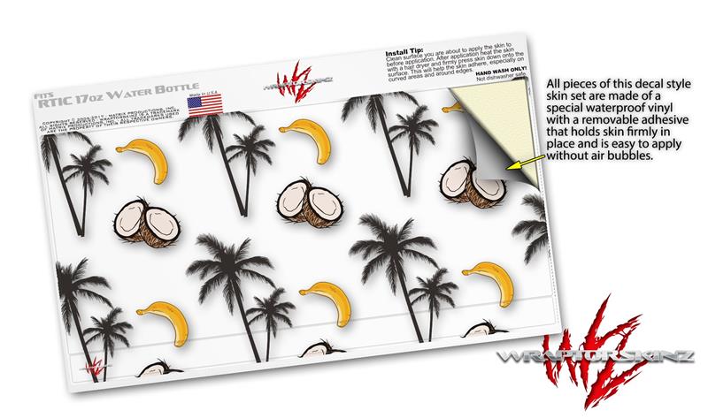 Skin Decal Wrap for RTIC Water Bottle 17oz Coconuts Palm Trees and Bananas White (BOTTLE NOT INCLUDED)