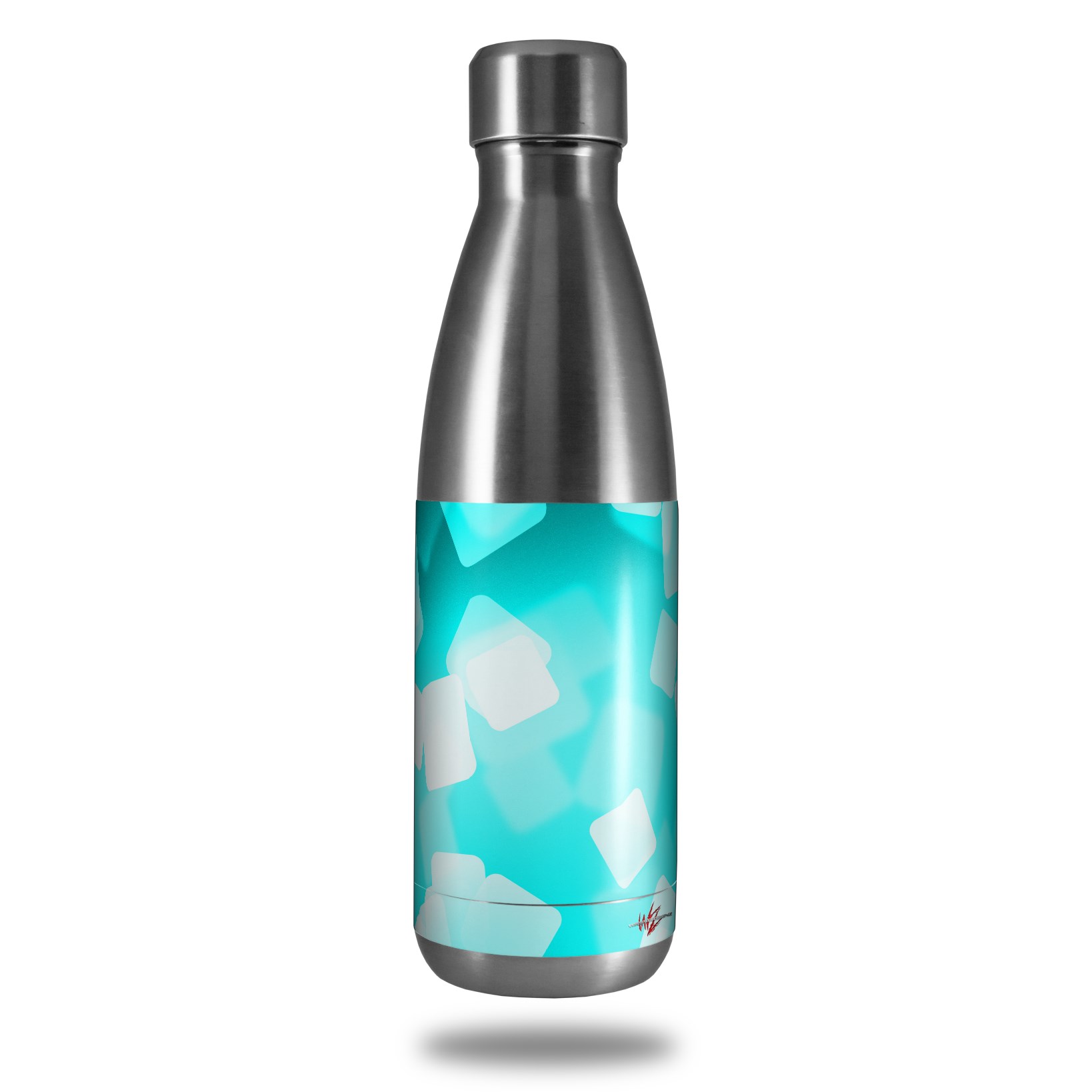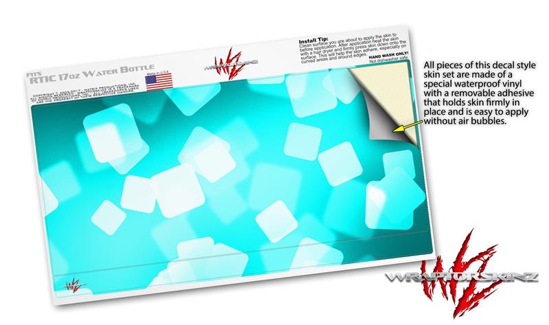 Skin Decal Wrap for RTIC Water Bottle 17oz Bokeh Squared Neon Teal (BOTTLE NOT INCLUDED)