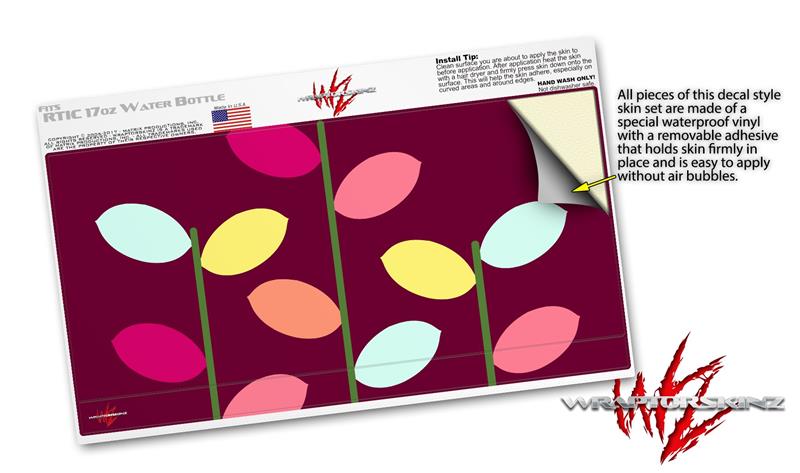 Skin Decal Wrap for RTIC Water Bottle 17oz Plain Leaves On Burgundy (BOTTLE NOT INCLUDED)